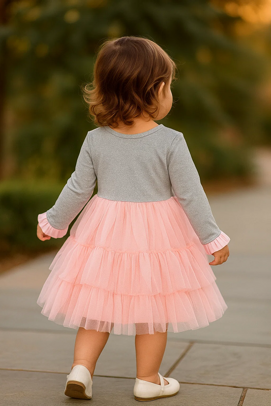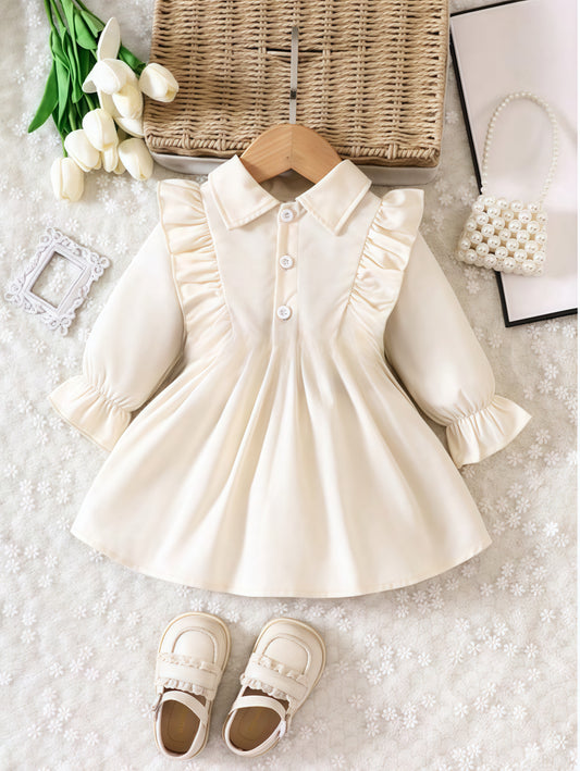 SHEIN Toddler Girls' A-Line Dress With Bowknot Front, Long Sleeve, Elastic Cuff And Ruffle