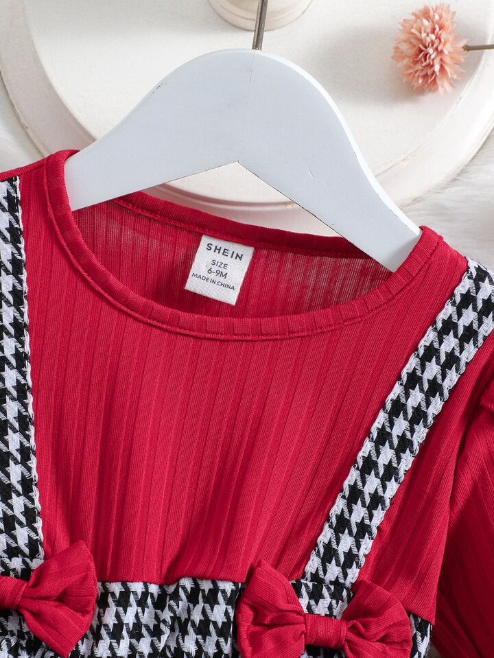 SHEIN baby ruffle trim bow front 2 in 1 dress