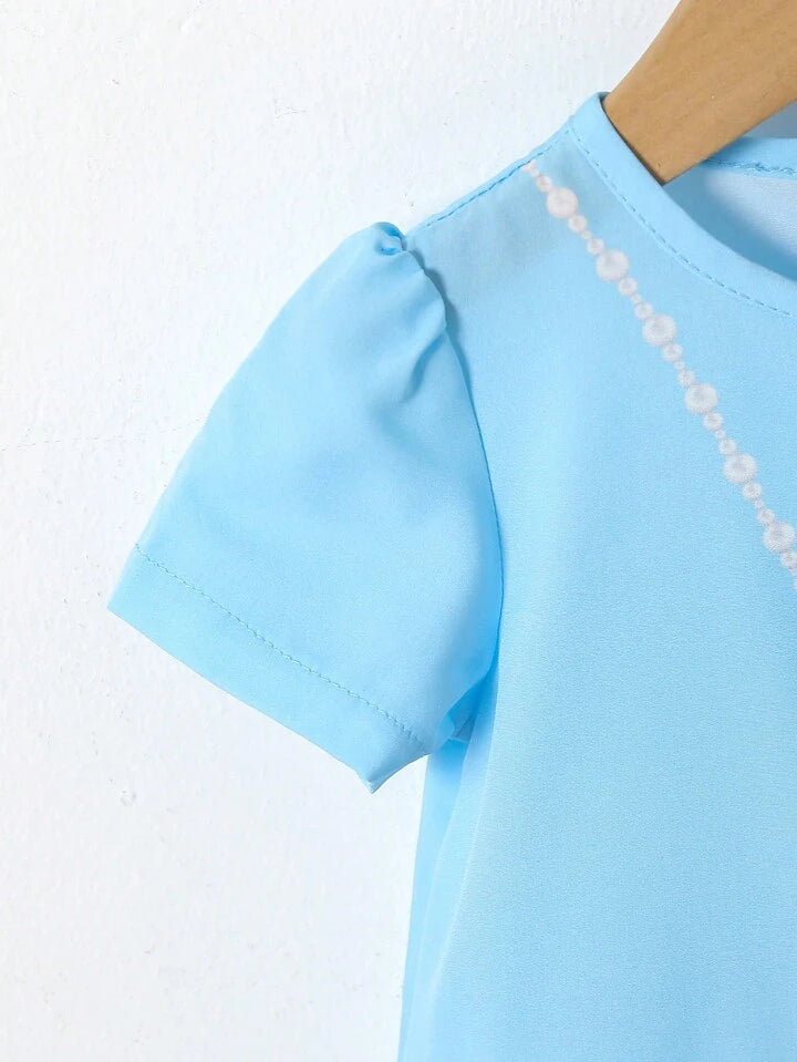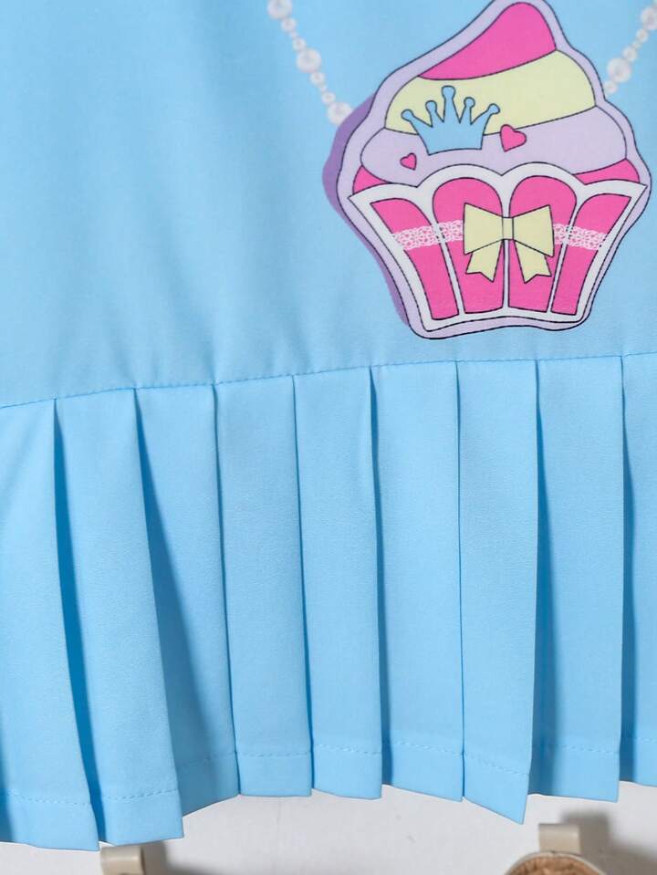 SHEIN Baby Girl Bag Print Bow Decor Pleated Hem Summer Dress