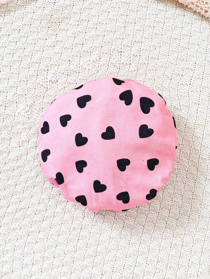 SHEIN Baby Girl Heart Print Ruffle Trim Flare Sleeve Belted Dress & Hat