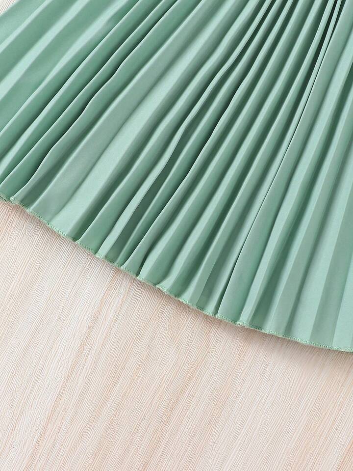 SHEIN Toddler Girls' A-Line Dress With Bowknot Front, Long Sleeve, Elastic Cuff And Ruffle